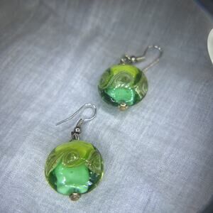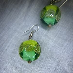 Glass Earrings Beads Green Hippie Green Apple Color Beautiful Round