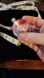Small art glass paperweight made by Glass Eye Studio and dated '01.Pale pink and magenta-red speckled lily-type flower in clear glass . It is 1-7/8" high and 1-7/8" in diameter. Small flat polished base is etched "GES 01". The paperweight is in excellent condition.