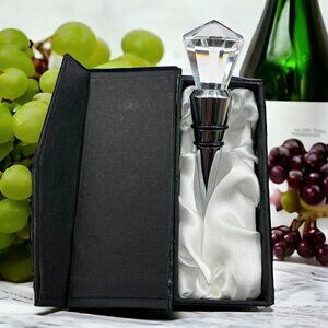 This pretty Glass Gem Wine Bottle Stopper has a Stainless Steel base. This Wine Bottle Stopper is New in Box and is a great quality piece. This would make the perfect Hostess Gift or a nice addition to your wine stopper collection.