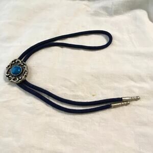 Glass Faux Turquois Bolo Tie Braided Cord Silver Tone Tips 32 in