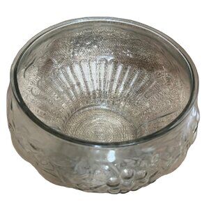 Glass Fruit Bowl Fruit Etching 10" Diameter Clear Molded Grapes Apples Pears Pea