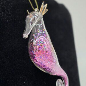 Glass Glitter Filled Seahorse Ornament With Gold Crown & Tail 5"
