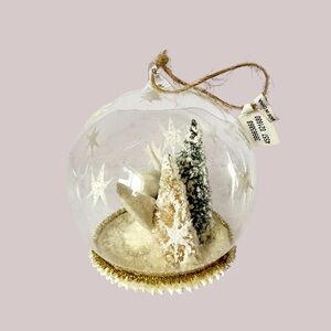 Glass Globe Diorama Christmas Ornament Owl in Snowy Pine Trees 4” NWT