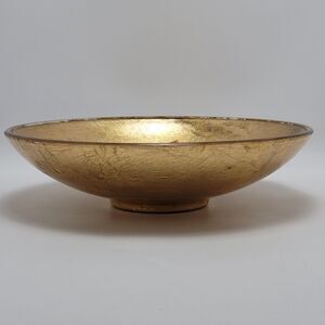 This solid glass bowl can be used as a beautiful centerpiece or displayed on a side table. The crinkle foil effect adds texture and depth, making it a stunning focal point in any room.