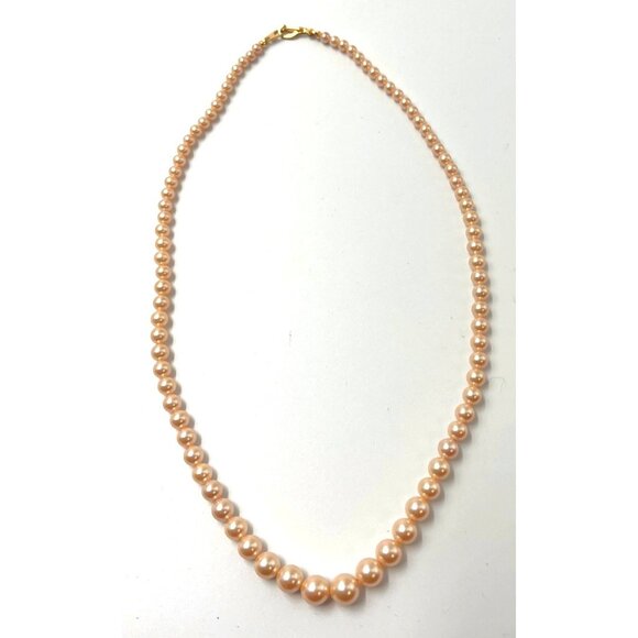 Glass Graduated Pink Pearlized Necklace Lobster Clasp