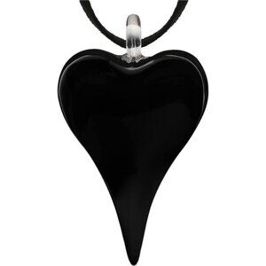 *Heart Necklace for Women - This big heart glass pendant size 1.41 x 2.16 inches. Comes with an adjustable black nylon cord 18–20 inches long (2" ext chain), lobster claw clasps. Wear this necklace with a pair of jeans or with any dress.