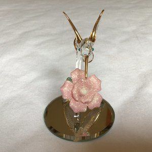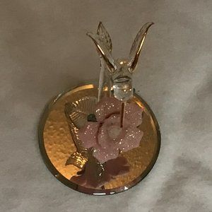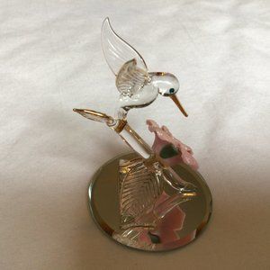 Glass Hummingbird figurine at flower on mirror base. Swarovski crystals for eyes and 22 kt. gold accents. See photos.