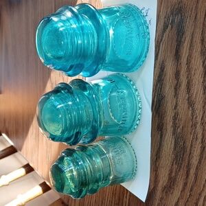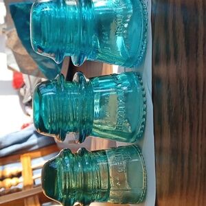 Glass Insulator Set of 3 Hemingray Aqua Blue Electrical Power Pole Made In USA
