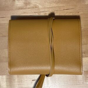 Glass Ladder & Co. Katherine Tech Organizer. Made from soft, pebbled grain vegan leather, this roll up is designed to keep all of your tech needs organized when you're on the go. It can store headphones, chargers, AirPods, SD cards, flash drives, batteries and more all fit perfectly in this one convenient design. Two larger pockets can hold some of your other must haves, too. No more tangled chargers mixed in with all of your other essentials! Organization has just become so much easier. This compact design is 20" x 6.5" when fully unrolled. Once you roll the Katherine the dimensions can vary depending on what size items your are storing in it. They are approximately 6.5" x 5" x 2"