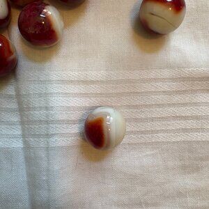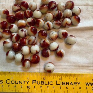 Glass Marbles. Opaque White Milk. Brown Swirl. Lot of 50. 5/8". Very good condition.