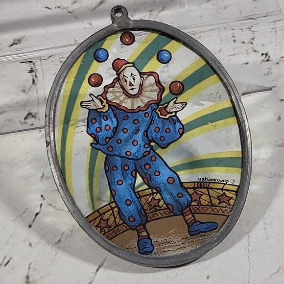 Glass Masters Suncatcher Juggling Circus Clown Carnival Oval Vintage 1980