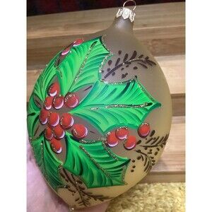The Bellagio Italian Mouth Blown Hand Painted Glass Ornament is a beautifully crafted Christmas decoration from Italy. This large oval-shaped ornament features a mistletoe pattern and multicolor design, adding a touch of elegance to your holiday decor. Handmade with attention to detail, this bead features a unique mistletoe theme and stands at 7 inches tall. Perfect for adults looking to add a touch of handmade charm to their home during the festive season.