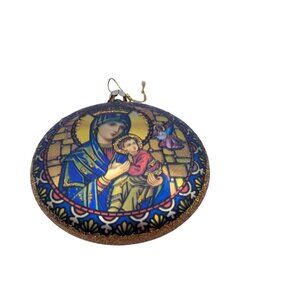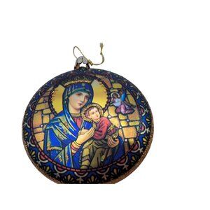 Glass Ornament Featuring Vibrant Madonna & Child Design With Intricate Stained G