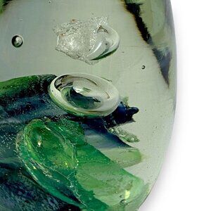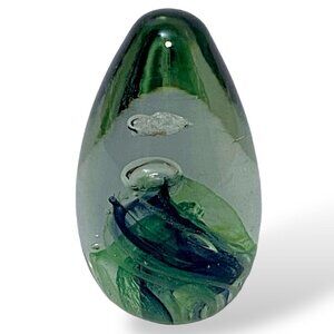 Glass Paperweight Abstract Green Swirl 3.5" Egg Shape Collectible