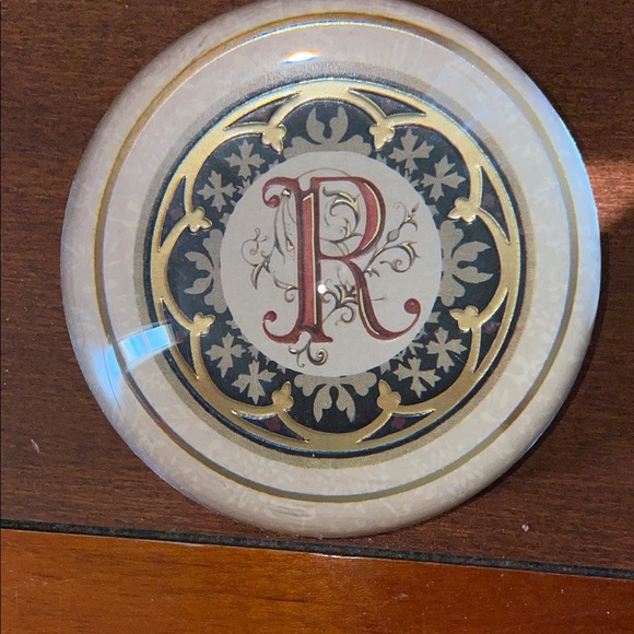 Glass paperweight with initial R