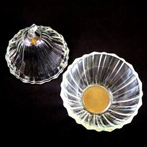 Glass Pear-Shaped Covered Bowl or Candy Dish - Vintage Ribbed Design 7.5” Tall