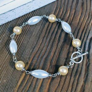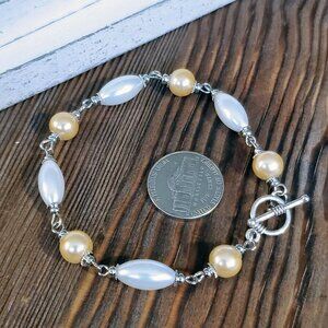 Glass Pearl Bracelet Silver White Champagne Yellow