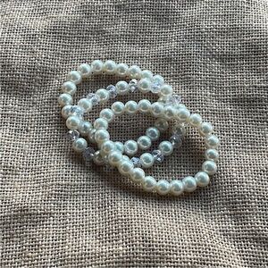 Glass Pearl bracelets stackable with crystals Lot of 3 Size 7 New elegant