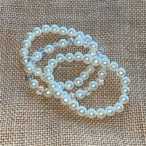 Glass Pearl bracelets stackable with crystals Lot of 3 Size 7 New