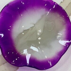 Glass Plug In Essential Oils Diffuser That Is Also A Light. Tap Anywhere On The Side Of The Clear Glass And The Light Will Shine Low, Tap Again For Medium Brightness And Tap Again For The Brightest Setting. This Item Is Used And Shows Slight Wear On One Side Of The Glass Dish On The Top. 6" High x 4" Wide
