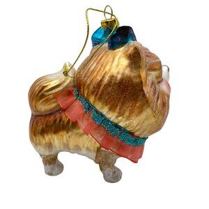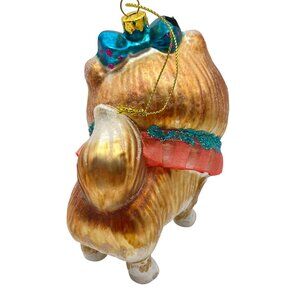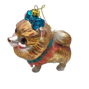 Glass Pomeranian dog Christmas tree ornament girl bow blushing ruffle collar