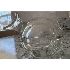 Glass Puffer Fish Trinket Keepsake Ring Box Tropical Ocean Anchor Hocking