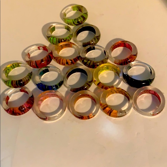 17 acrylic rings in sizes 6, 6-1/2, 7, 7-1/2, 7-3/4, 8, 8-1/2 in lots of different colors