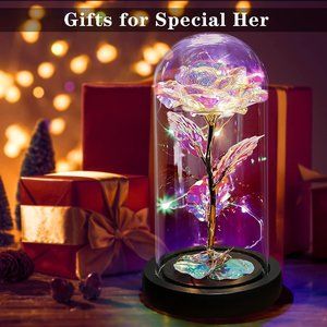 Glass Rose Galaxy Enchanted Light-Up Flower - Perfect Gift for Women Mul…
