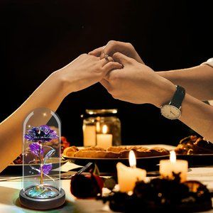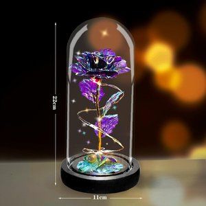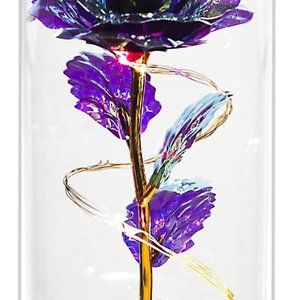 Glass Rose Galaxy Enchanted Light-Up Flower Perfect Gift for Women Purple Color