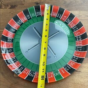 Vibrant roulette wheel plate with red, black, and green sections. Perfect for game nights.