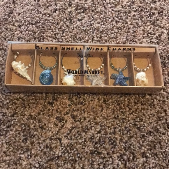 World Market glass shell wine charms. Set of 6. Brand new. Adorable!
