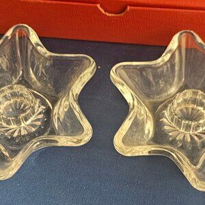 Glass Six Point Taper Candle Holder Star Shaped Set of 2