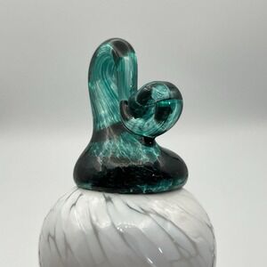 Glass Snowman Handblown Ornament Sculpture White Marbled / Emerald Hat Christmas