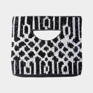 Front is Silver and Black Abstract Pattern Sparkle Seed Beading.