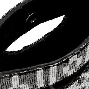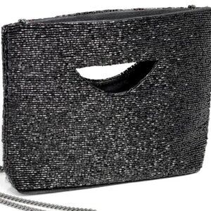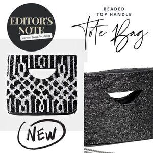 Glass Sparkle Seed Beaded Top Handle Tote Bag Handbag Spring Black NEW