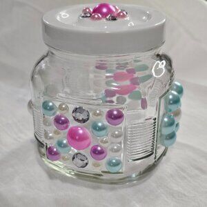 This NEW stunning handmade upcycled pretty glass jar is a perfect blend of elegance and eco-friendliness.