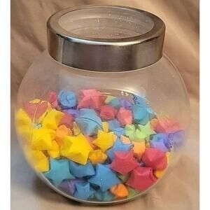 Glass Storage Jar with Handmade Origami Stars in Various Colors