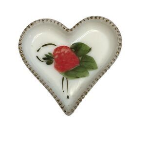 *Set of 2 Glass Strawberries with Milk Glass Heart-Shaped Dish