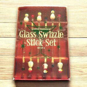Glass Swizzle Sticks Set-6 Frosty Snowman Holiday's Barware Collection Boston