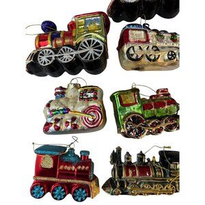 Glass Train Railroad Ornaments Set Of 12 Multicolor Hand-Painted Holiday Decor V