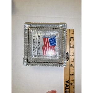 Glass Trinket Box w Lid From Former McKinley Grand Hotel Canton Ohio US Flag 4" Square Souvenir EUC