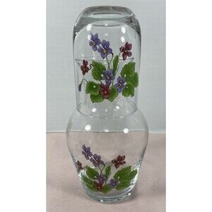 Tumble Up Carafe & Tumbler Glass Night Bedside Table Set Hand Painted with Flowers in very good condition.