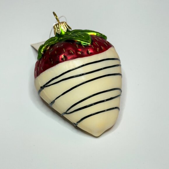 Glass White Chocolate Dipped Strawberry Christmas Holiday Ornament. New with tags.