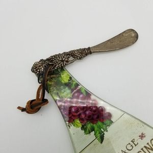 Glass Wine Bottle & Knife Serving Board Grapes Ornate Orchard Cheese Cutting