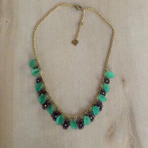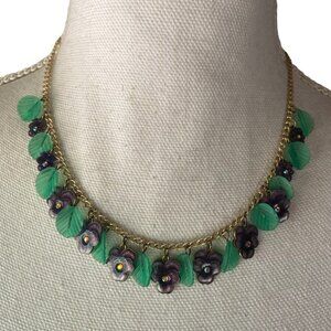 Glass Works Studio Green Glass Purple Enamel Flower Dainty Charm Necklace 18"