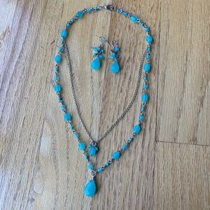 The larger beads are glass, the smaller ones are turquoise. Double necklace has a pendant on the inner chain and more beads on the outer chain.