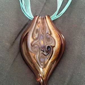 One of a kind hand blown glass necklace with main colors being brown, shades of blue, and gold flecks. Never been worn! Beautiful in person!