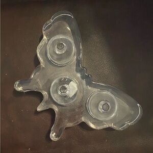 Holds 3 tea light size candles comes with succulent one seen in pictures. Thick glass. Very pretty.
