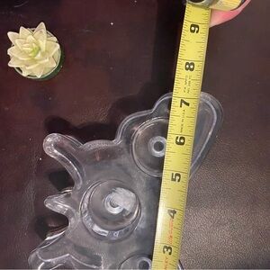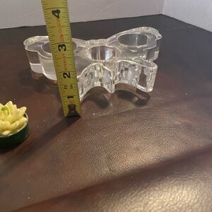 Holds 3 tea light size candles comes with succulent one seen in pictures. Thick glass. Very pretty.