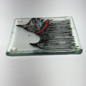 Glass by Kathryn Clear Glass Black Scottie Dog Square Coaster. 4" square. Very nice condition.